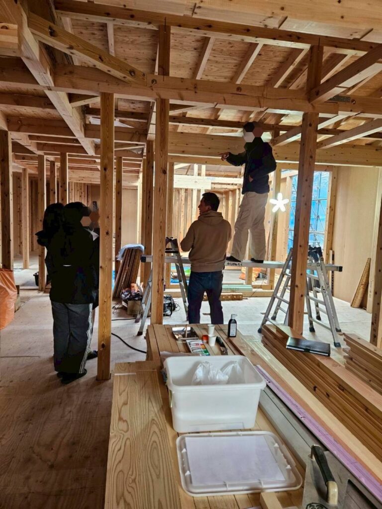 職人さんたちの息の合った作業で、あっという間に家の全体像が現れます。